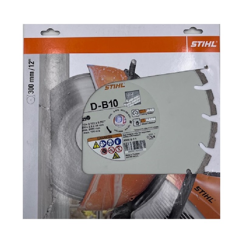 The Stihl D-B10 12” diamond blade (ref. 0835 090 7051) delivers fast, clean cutting on hard construction materials like concrete, brick, pavers, and stone.